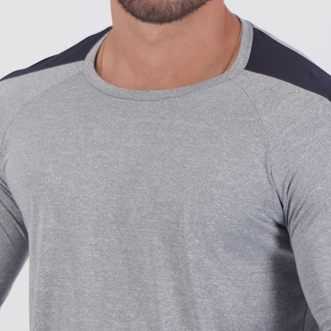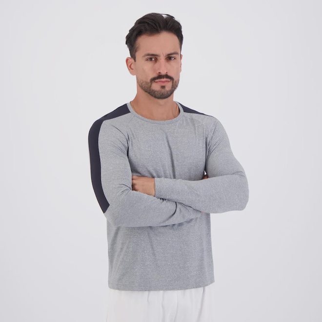 Composição: 100% Poliamida Cor predominante: Cinza Indicado para: Treino Gênero: Masculino Origem: Nacional Logo: Estampada Manga: Longa Gola: Careca Dimensões aproximadas (A x L): P: 66 x 50 cm M: 67 x 53 cm G: 72 x 54 cm GG: 74 x 56 cm