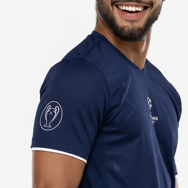 Desenvolvida para os verdadeiros fãs do futebol, esta camiseta não apenas expressa sua paixão pela UEFA Champions League, mas também oferece um toque de estilo premium para seu guarda-roupa esportivo.