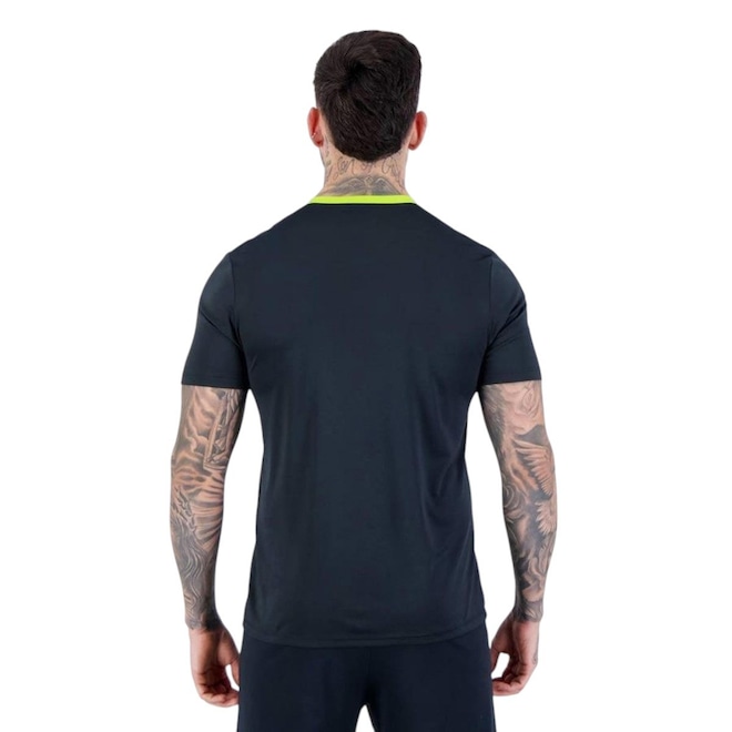 A Camisa Umbro Cyber Masculina é perfeita para jogos e partidas de futebol, oferecendo conforto e liberdade de movimento. Confeccionada em poliéster, possui design moderno na cor preta e apresenta a logo da marca estampada em destaque no tórax, combinando funcionalidade e estilo.