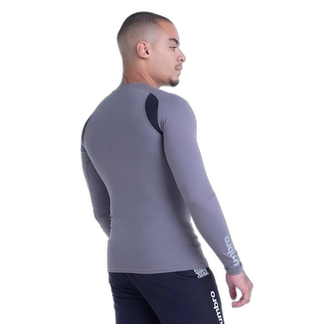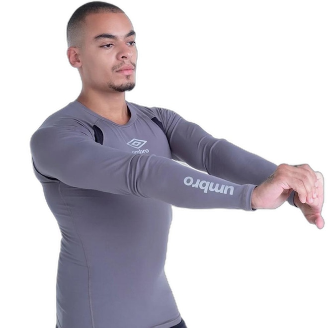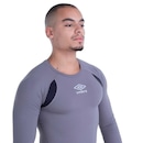 Camisa térmica masculina confeccionada em poliamida e elastano. Modelagem slim fit, mais ajustada ao corpo, com manga longa raglan. Possui gola careca, recorte em Mesh nas cavas para maior respirabilidade, logo Umbro refletivo na manga direita e logo Umbro refletivo centralizado na parte frontal superior.