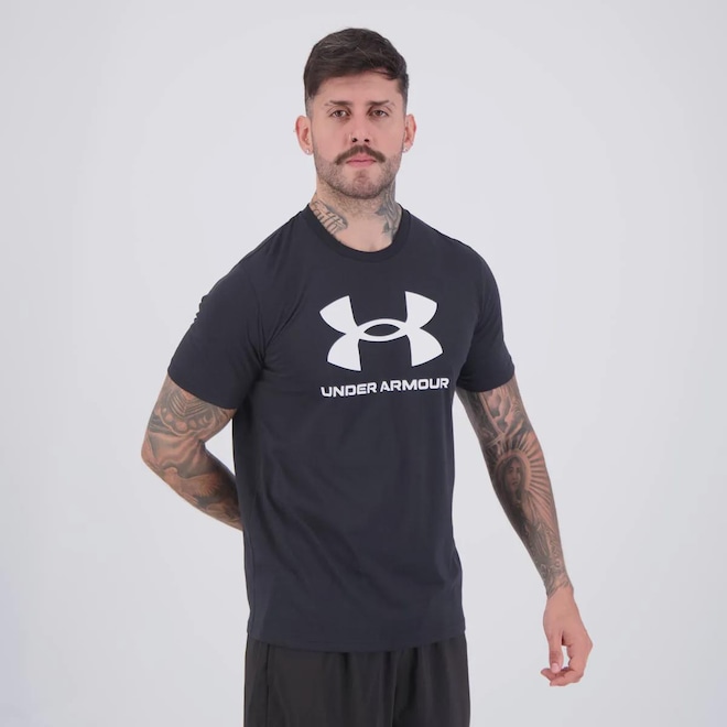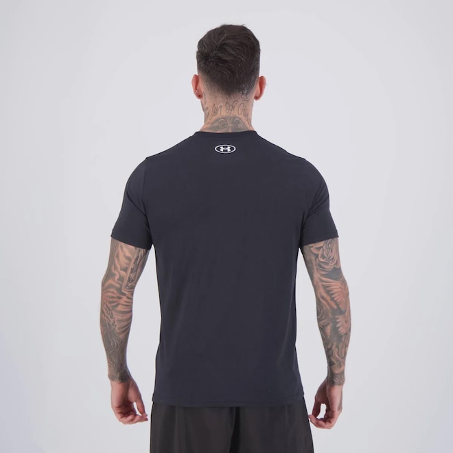 Composição: 60% Algodão e 40% Poliéster Cor Predominante: Preta Indicado para: Treino Gênero: Masculino Origem: Importada Logo: Estampada Manga: Curta Gola: Careca Dimensões aproximadas (A x L): P: 72 x 51 cm M: 74 x 53 cm G: 76 x 55 cm GG: 78 x 57 cm