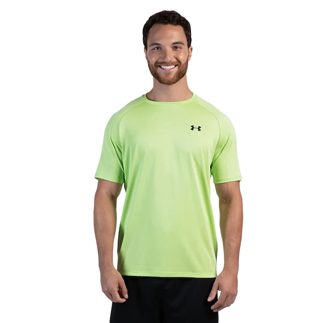 A camiseta da Under Armour, modelo Tech 2.0, confeccionada com tecnologia HeatGear, para ventilação total e ajudar a manter a temperatura do corpo, mantém o suor longe da pele e seca rápido e tecnologia antiodor que evita a proliferação de micróbios que causam odores.