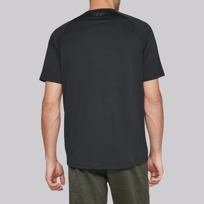 Tecnologia UA Tech ™: Tecido de secagem rápida, ultra macio e com uma sensação mais natural. Composição: 100% Poliéster Cor Predominante: Preta Gênero: Masculino Origem: Nacional Logo: Estampada Manga: Curta Gola: Careca Dimensões aproximadas (A x L): P: 73 x 52 cm M: 75 x 54 cm G: 77 x 56 cm GG: 79 x 58 cm