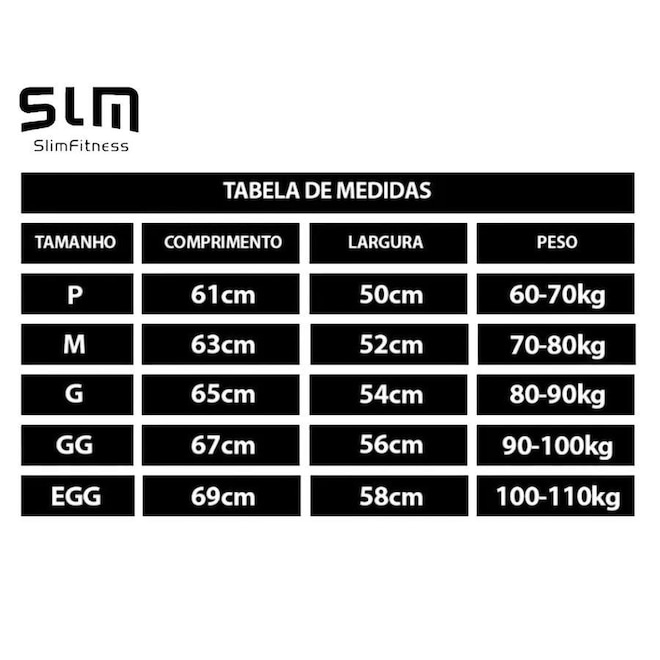 "P" = 61cm x 50cm x 46cm (comprimento x largura x manga)