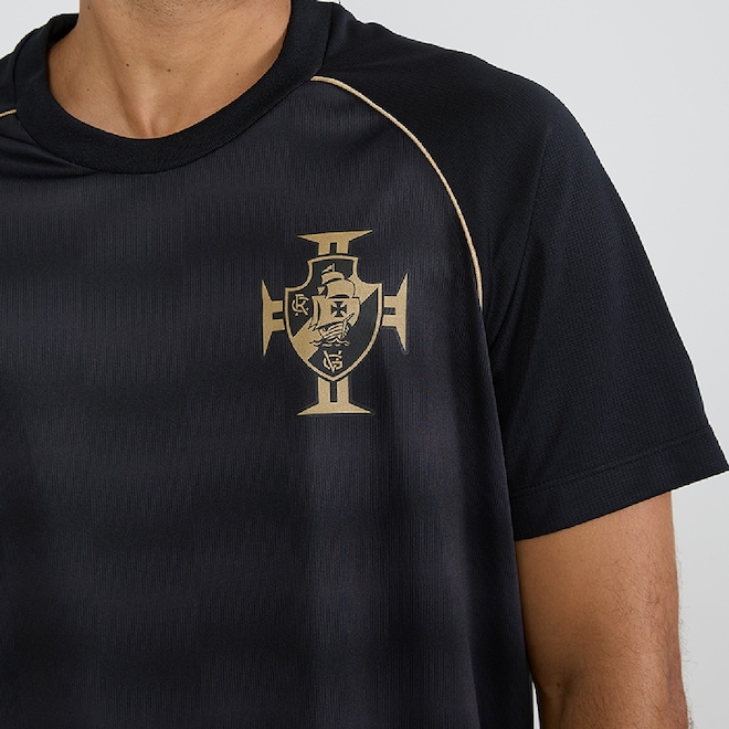 Mostre sua paixão pelo Gigante da Colina com estilo e conforto! Confeccionada em poliéster leve e resistente, esta camisa preta traz o escudo oficial do Vasco estampado no lado esquerdo do peito, enquanto o nome “VASCO” aparece em destaque dourado no lado direito, adicionando um toque moderno e elegante.