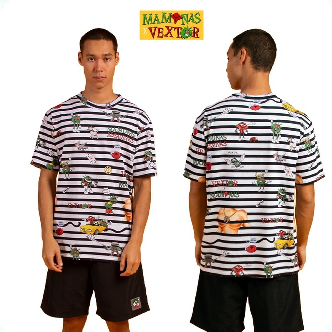 Camiseta Vextor X Mamonas Assassinas Listras Full Print Masculina