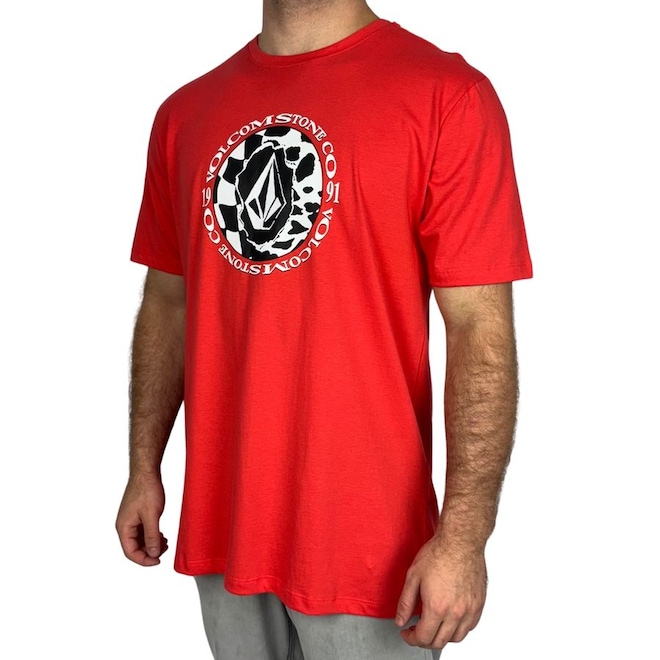 Camiseta Volcom Black Friday. Possui modelagem regular, estampa em silk frontal, assinatura Volcom na manga e viés contrastante.