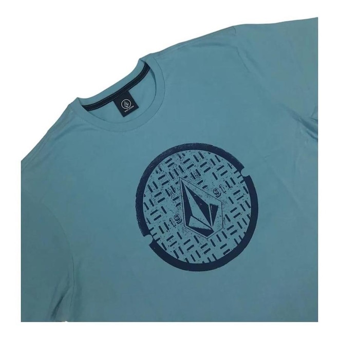 Camiseta Volcom feita em modelagem regular, meia malha 30.1, silk frontal, assinatura Volcom na manga, etiqueta interna e viés contrastante.