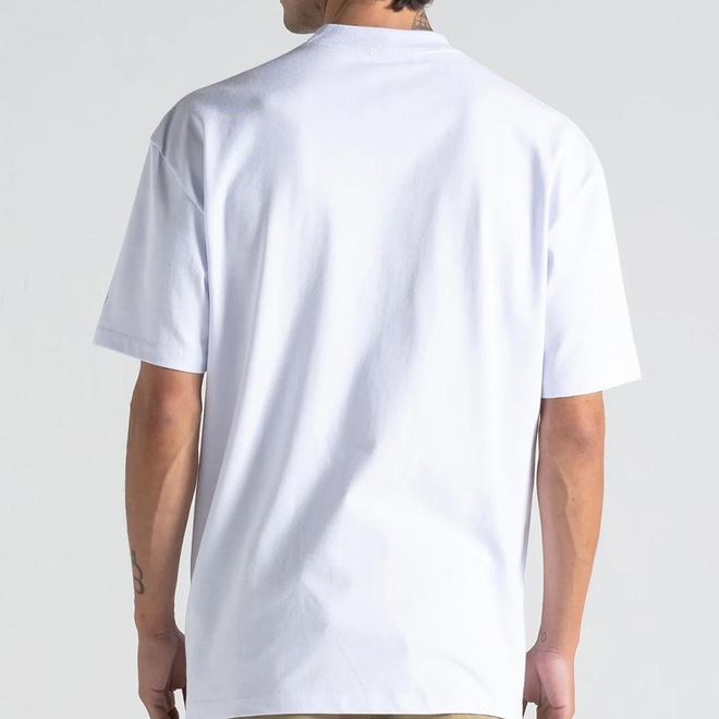 Camiseta Volcom feita em modelagem comfort, gola de 3cm, silk Circle Stone na manga, assinatura Volcom na manga, etiqueta Volcom na barra e viés contrastante.