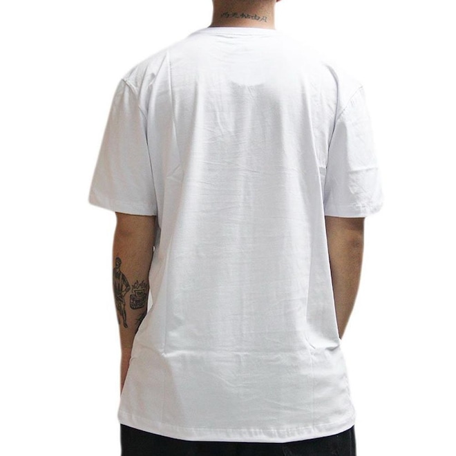 Camiseta Volcom feita em modelagem regular, meia malha 30.1, silk frontal, assinatura Volcom na manga, etiqueta interna e viés contrastante.