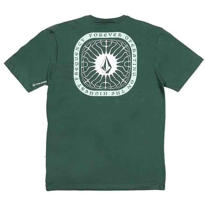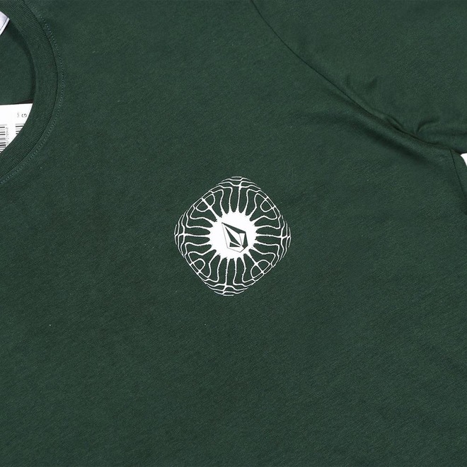Camiseta Volcom feita em modelagem regular, meia malha 30.1, silk frente e costas, assinatura Volcom na manga, etiqueta interna e viés contrastante.