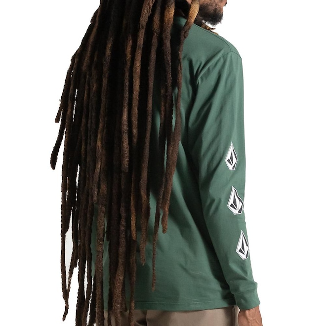Camiseta Volcom Manga Longa feita em modelagem regular, meia malha 30.1, silk frente e manga e etiqueta interna.