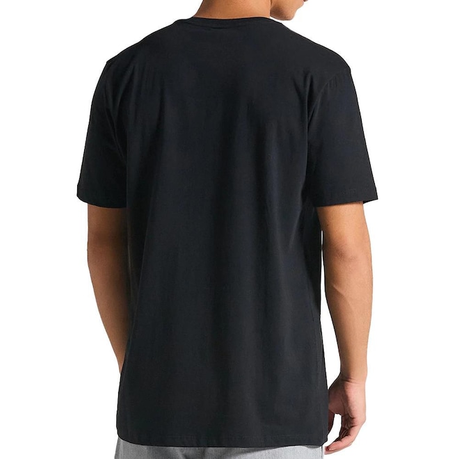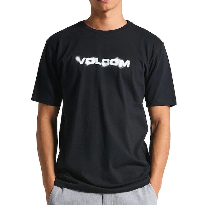 Camiseta Volcom feita em modelagem regular, meia malha 30.1, silk frontal, assinatura Volcom na manga, etiqueta interna e viés contrastante.