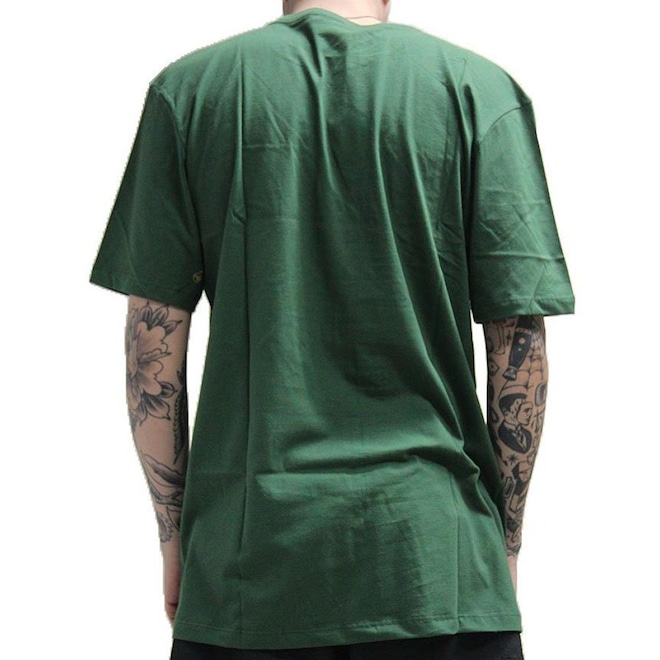 Camiseta Volcom feita em modelagem regular, meia malha 30.1, silk frontal, assinatura Volcom na manga, etiqueta interna e viés contrastante.