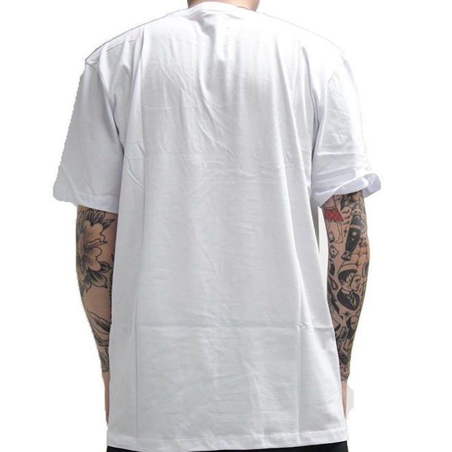 Camiseta Volcom feita em modelagem regular, meia malha 30.1, silk frontal, assinatura Volcom na manga, etiqueta interna e viés contrastante.