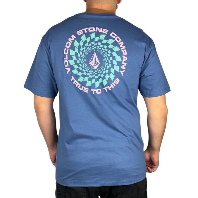 Camiseta Volcom Rabbit Hole. Possui modelagem regular, estampa em silk frontal e nas costas em alto relevo, assinatura Volcom na manga, etiqueta interna e viés contrastante.
