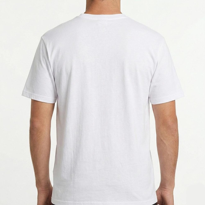 Camiseta Volcom feita em modelagem regular, meia malha 30.1, silk frontal, assinatura Volcom na manga, etiqueta interna e viés contrastante.