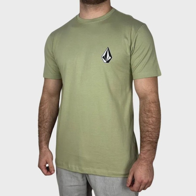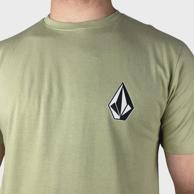 Camiseta Volcom Iconic. Possui modelagem regular, estampa em silk frontal, assinatura Volcom na manga e viés contrastante.