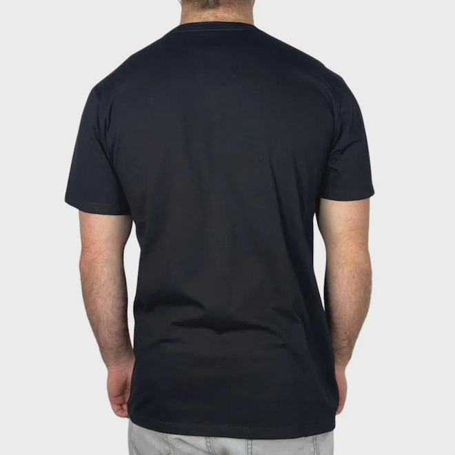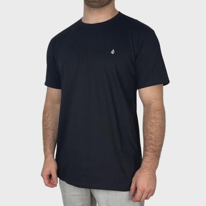 Camiseta Volcom Stone Blanks Preta. Possui modelagem regular, silk frontal, assinatura Volcom na manga, etiqueta interna e viés contrastante.