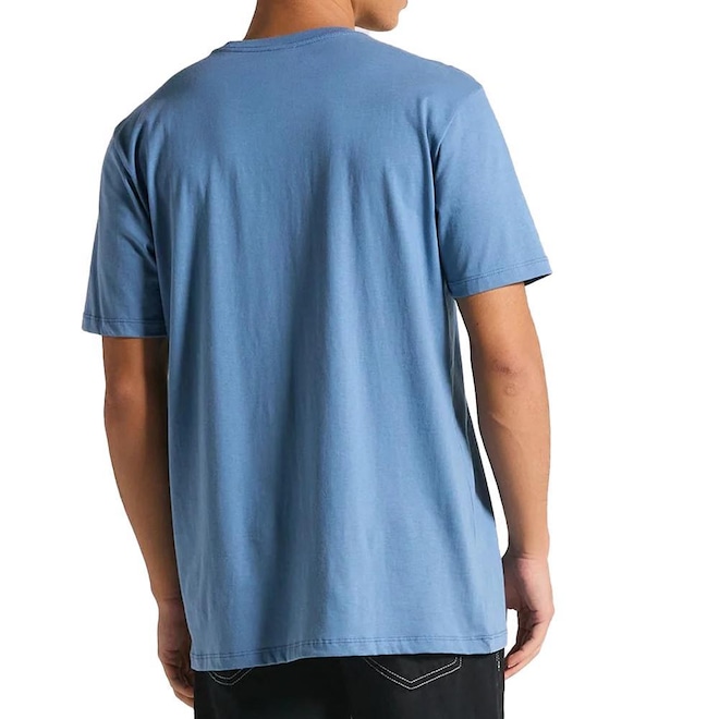 Camiseta Volcom feita em modelagem regular, meia malha 30.1, silk frontal, assinatura Volcom na manga, etiqueta interna e viés contrastante.