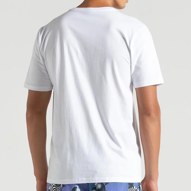 Camiseta Volcom feita em modelagem regular, meia malha 30.1, silk na manga, assinatura Volcom na manga, etiqueta internae viés contrastante.