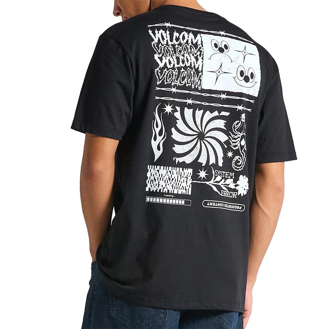 Camiseta Volcom feita em modelagem regular, meia malha 30.1, silk frente e costas, assinatura Volcom na manga, etiqueta interna e viés contrastante.
