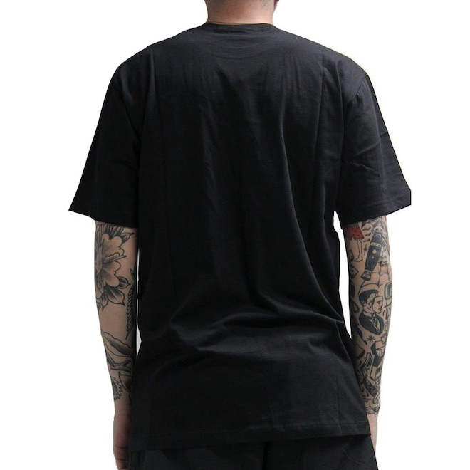 Camiseta Volcom feita em modelagem regular, meia malha 30.1, silk frontal, assinatura Volcom na manga, etiqueta interna e viés contrastante.