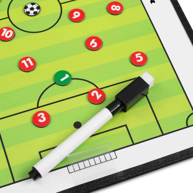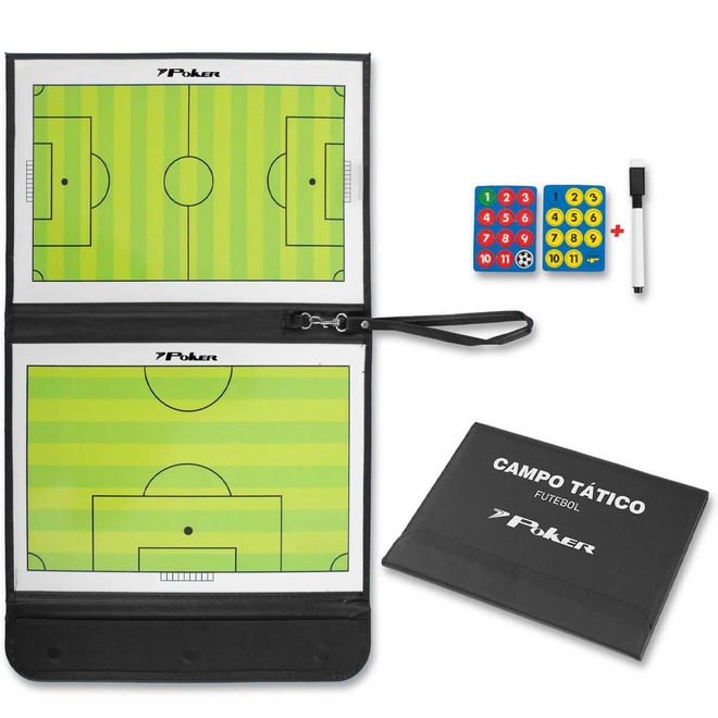A estratégia perfeita em suas mãos: Campo Tático com imã e caneta. Planeje jogadas e aprimore técnicas com precisão utilizando o Campo Tático permite visualizar e adaptar estratégias com facilidade. Contém imã e uma caneta que escreve e apaga, proporcionando grande praticidade. Ideal para treinadores e jogadores de futebol que buscam excelência em cada jogada.