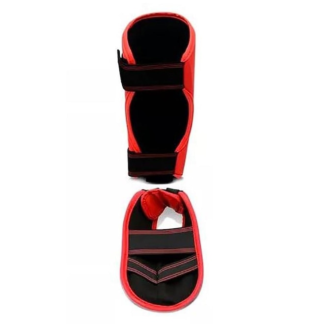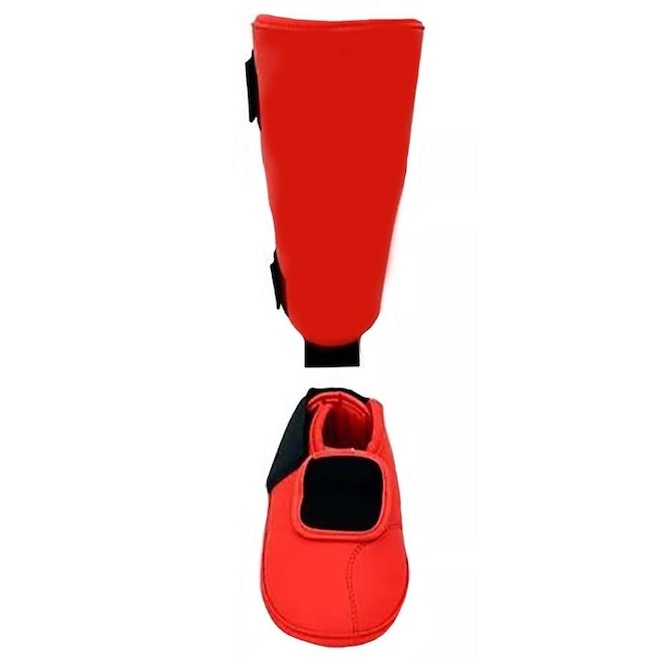 A Caneleira de karatê Shinai Com Protetor de peito de pé Infantil aprovada pela CBK protege a canela, o tornozelo e o peito pé de forma firme e segura.