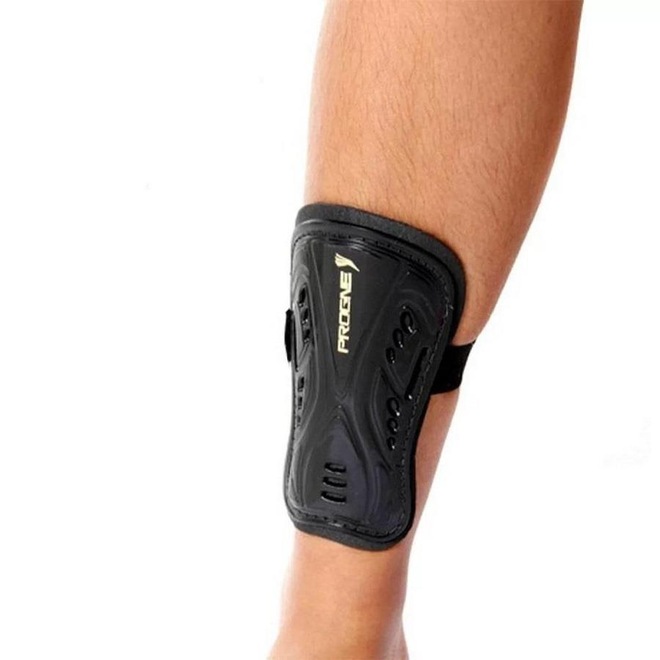 Proteção rígida na frente e de borracha no contato da canela permite mantê-la firme e não deixa que ela saia do lugar, evitando transtornos e distrações durante os jogos.