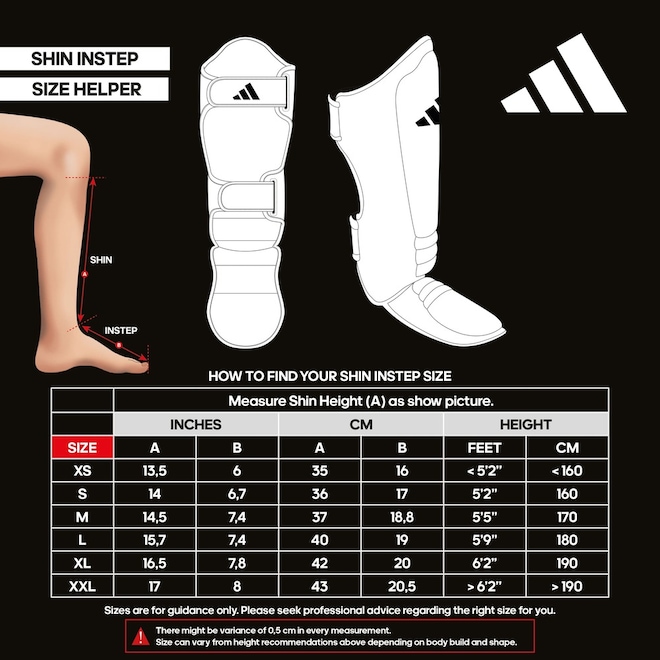 GUIA DE TAMANHO: PROTETOR DE CANELA E PÉ KARATE ADIDAS