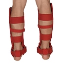 - Fechamento com 2 tiras largas elásticas e mais uma tira, todas com fita de contato nas extremidades para perfeito ajuste na caneleira