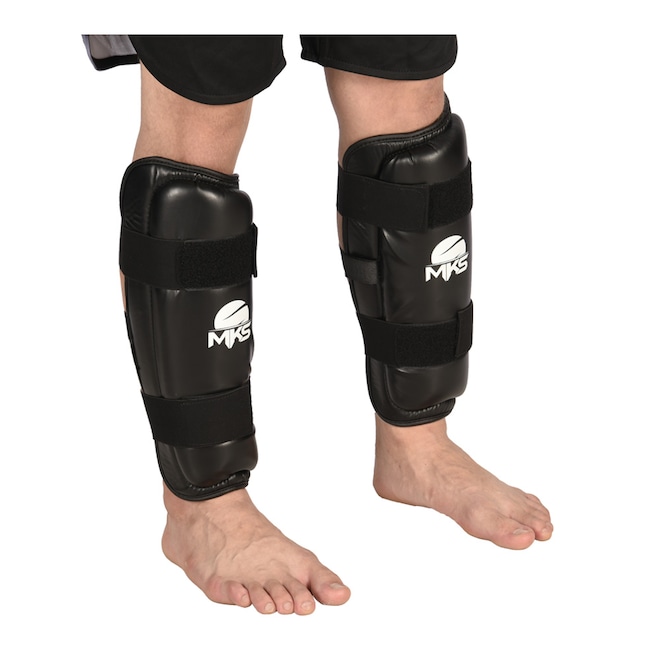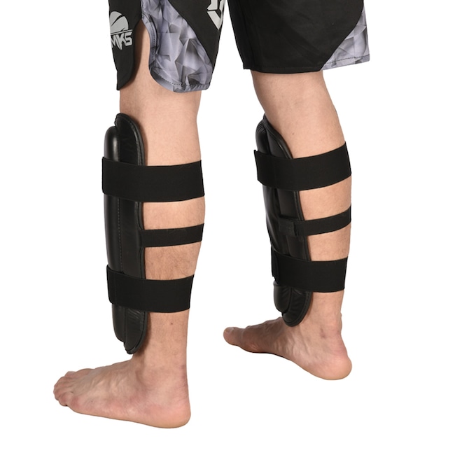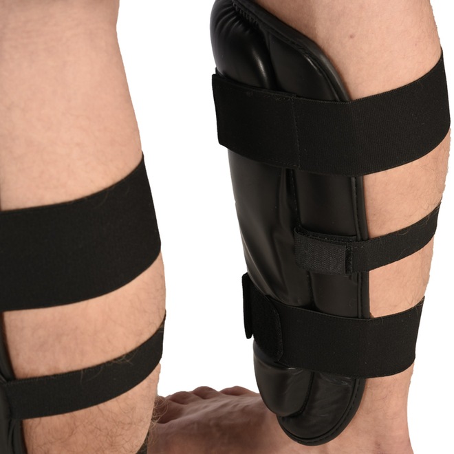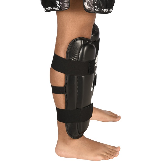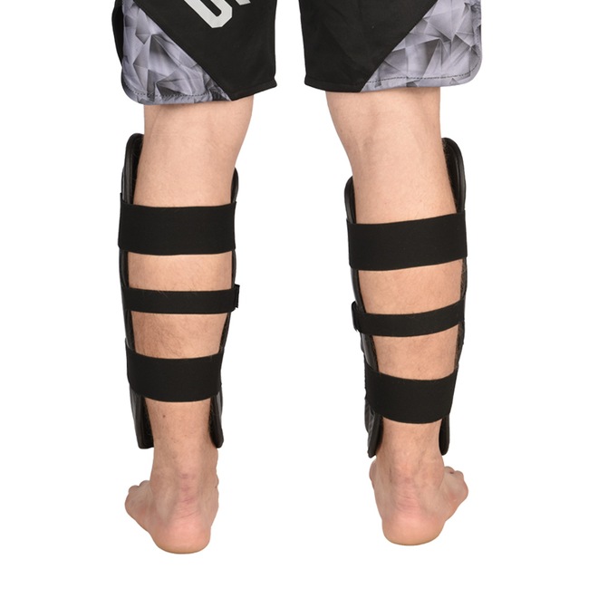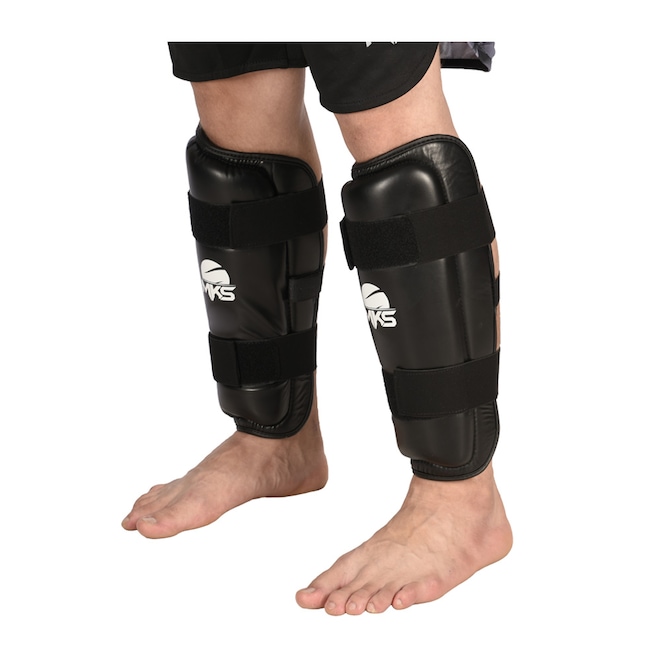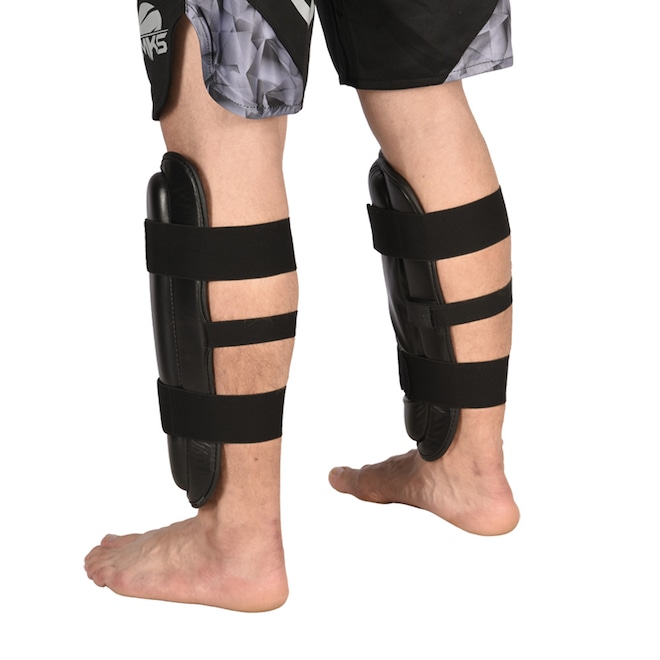 Caneleiras para treinos de Kickboxing, Material externo resistente PU (Poliuretano, material resistena a rasgos e muito durável), Acolchoamento de espuma de camada dupla de EVA para um nível ideal de absorção de impacto, Sistema de fechamento com 2 tiras elásticas largas e outra central para melhor fixação