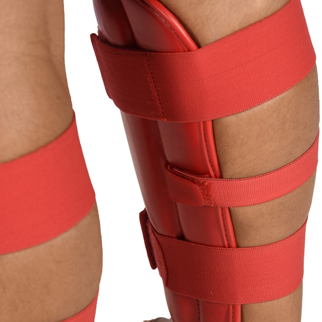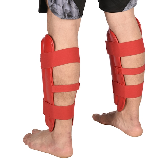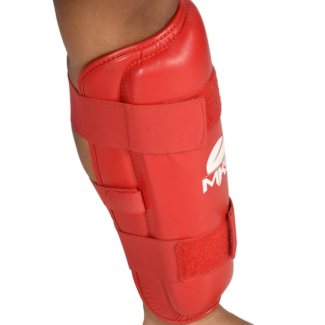 Caneleiras para treinos de Kickboxing, Material externo resistente PU (Poliuretano, material resistena a rasgos e muito durável), Acolchoamento de espuma de camada dupla de EVA para um nível ideal de absorção de impacto, Sistema de fechamento com 2 tiras elásticas largas e outra central para melhor fixação