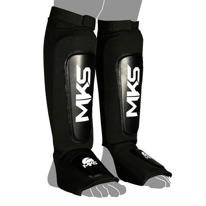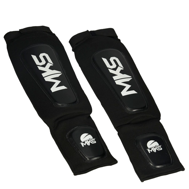 Confortável e resistente, [indicada para treinos de mma, grappling pois não se desloca, podendo rolar e ir com ela para o chão e levantar, pois não limita seus movimentos, a nova Caneleira MKS Contender é confeccionada em 100% Poliéster elástico, possui fita de ajuste para melhor fixação na parte superior próximo ao joelho, acolchoado de espuma EVOFLEX de 13mm em toda extensão da canela e peito do pé para maior proteção, além de revestimento em PU nas áreas de contato da canela e do pé chegando a 20mm nessas áreas.
