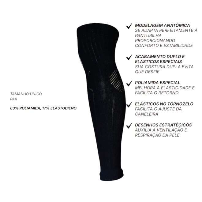 se adapta perfeitamente à panturilha proporcionando conforto e estabilidade - ACABAMENTO DUPLO E ELÁSTICOS ESPECIAIS