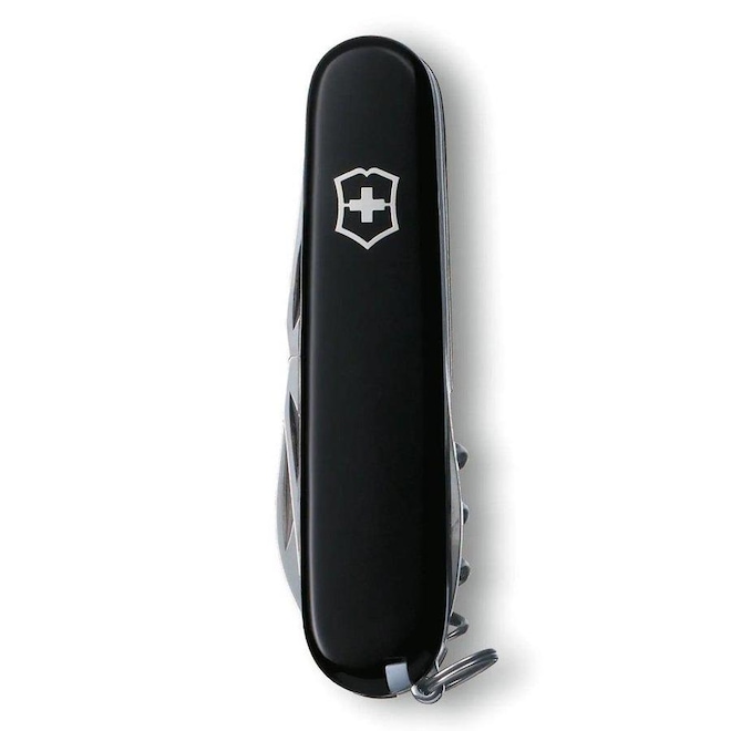 - Contém saca-rolhas e abridor de lata com uma chave de fenda pequena