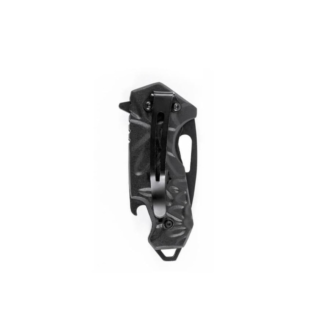 Possui abertura rápida assistida por mola (spring assisted), lâmina em aço inox 420 com 3 mm de espessura e clip tático de fixação.