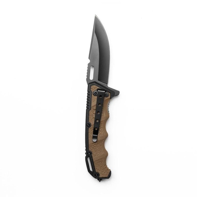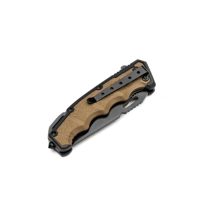 Possui lâmina em aço inoxidável 3Cr , de maior resistência a impactos e maior durabilidade, empunhadura com polímero duplo com aspecto emborrachado, clip tático, ponteira quebra-vidros e abertura fácil e rápida, assistida por mola (spring assisted).