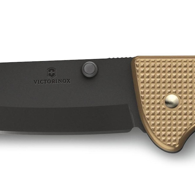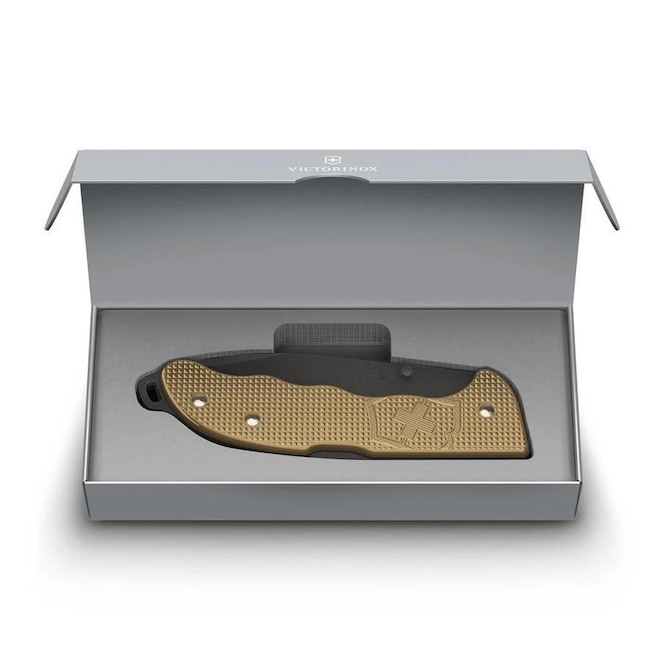 Canivete Evoke BS Alox - VICTORINOX Com a aventura diária em seu DNA, o Evoke BS Alox é o canivete dobrável para quem adora abrir novos caminhos. Intrépido e de estilo único, este canivete impressiona com sua funcionalidade inovadora. Seus recursos inteligentes incluem um pino para polegar removível para fácil abertura da lâmina e um clip para transporte removível. Cor: Dourado / Material: Aço inox O canivete dobrável perfeito para as aventuras diárias, com pino para polegar removível Canivete com 4 funções produzido na Suíça Com clip para transporte removível e tala de óxido de alumínio resistentes e sofisticadas integradas Ferramentas: Lâmina, grande Pino de polegar removível Clip para transporte Furo para cordão de segurança DIMENSÕES Altura: 20 mm Comprimento: 136 mm Largura: 40 mm Peso: 150 gref: M0ZCU8