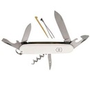 Contém saca-rolhas e abridor de lata com uma chave de fenda pequena