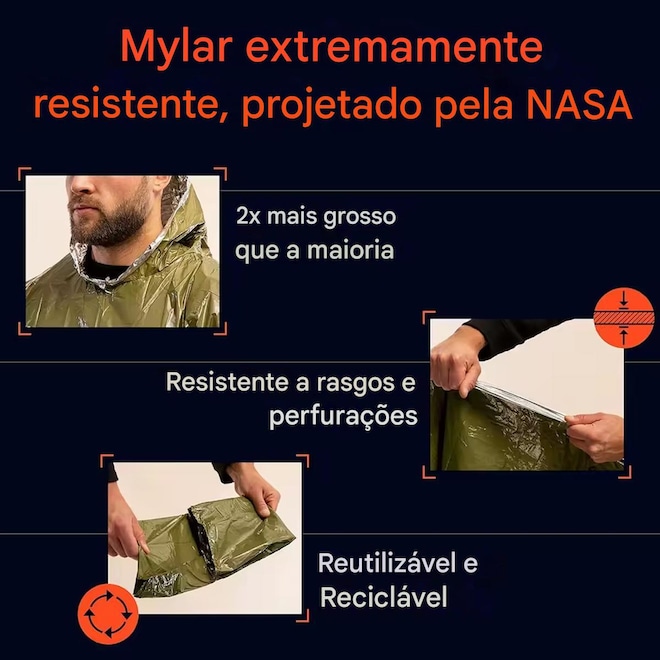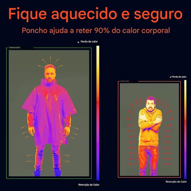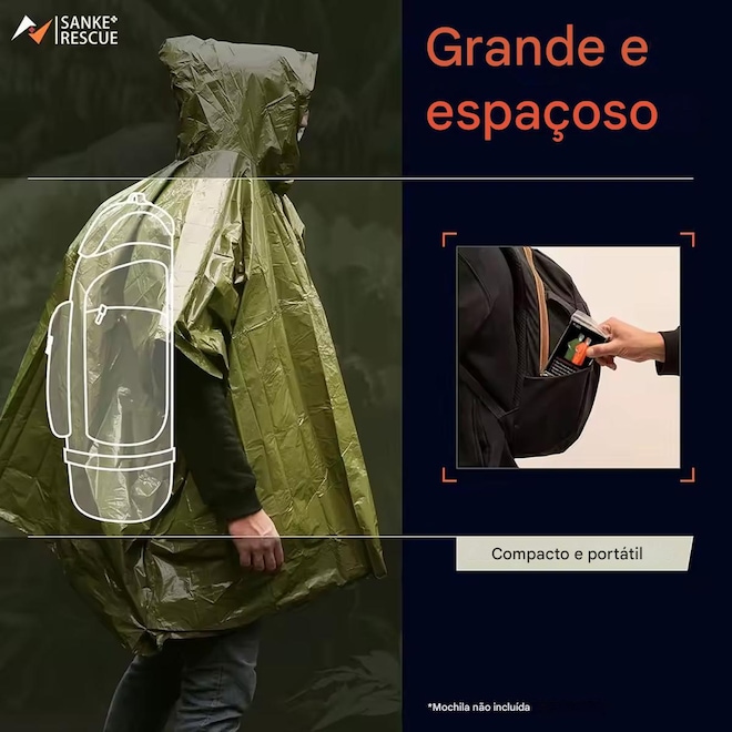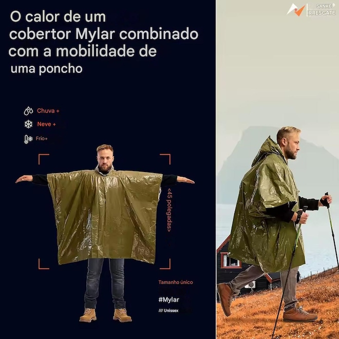 Casaco Esportivo Gold Sports Térmico De Emergencia Anti Chuva Para Caminhadas e Acampamento. Quando o mau tempo chega, o poncho de chuva irá mantê-lo seco, limpo e seguro.O casaco térmico de chuva com 28 μm de espessura pode servir como um cobertor de emergência, que retém 90% do calor do corpo para ajudar a prevenir a hipotermia e é à prova d'água e à prova de vento.