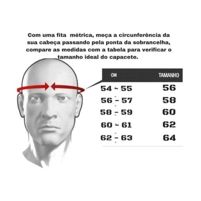 Tamanho do capacete G, porém ele possui ajuste, sendo compatível para vários tamanhos de cabeça.