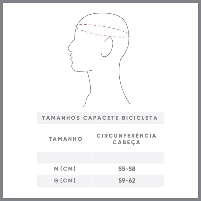 - Tamanho G: Circunferência da cabeça (57 - 62 cm)
