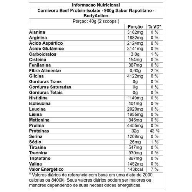 Carnivoro Beef Protein Isolate é um suplemento ideal para atletas que buscam o ganho de massa muscular, sua extração é feita a partir da hidrólise da proteína isolada da carne, além disto Carnivoro Beef Protein Isolate contém 32g da melhor proteína da carne o que oferece ao atleta o poder de construção muscular através de níveis superiores da proteína animal sem a inconveniência da gordura e colesterol..