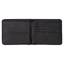 Carteira Hurley feita em material não natural, recorte extremo, placa de metal ONE&ONLY, compartimento para cartões e compartimento para cédulas.