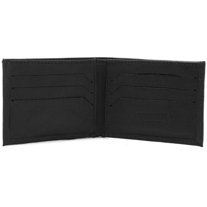 Carteira com aplicação de placa de metal logo em prata velho.
