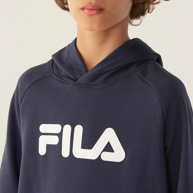Casaco com capuz feito em moletom de algodão com poliéster na modelagem regular. Possui capuz ajustável, bolso canguru e acabamentos em ribana. Com os certificados OEKO-TEX e BCI, é sustentável e livre de químicos nocivos. A estampa centralizada FILA no peito completa o design atemporal.