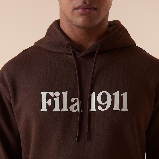 Casaco com capuz masculino feito em moletom sem felpa. Possui modelagem comfort, capuz transpassado com cordão, bolso canguru e acabamentos reforçados com pespontos. Detalhes como cobregola, bandeira lateral Heritage e barra e punhos em ribana garantem caimento perfeito. O destaque é o logo maxi FILA Linear em silk, que agrega identidade à peça.