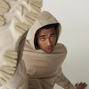 Modelagem comfort, mais solta no corpo, com capuz e manga longa.